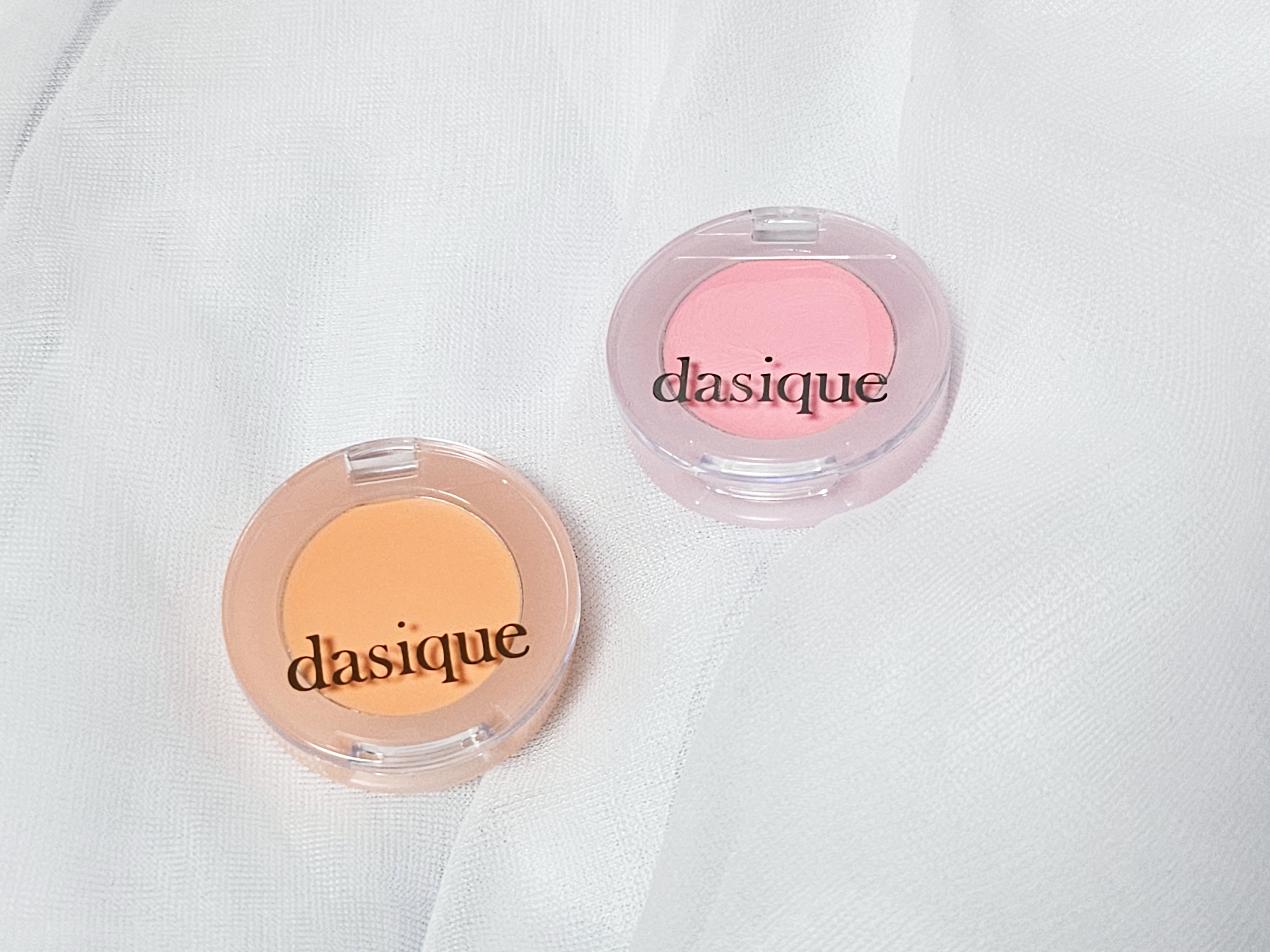 그냥 제품 사진만 보면 감이 잘 안 오실 수도 있지만, 500원짜리 동전보다 조금 더 큰 크기입니다. 파우치 안에 쏙 들어가 아주 실용적이고 가볍습니다. 그리고 미니 화장품이라고 해서 마감이 안 좋은 경우도 많이 봤는데, 다행히 데이지크의 미니 크림 치크는 캐스터네츠 현상도 없고 단단하게 만듦새가 좋았습니다.