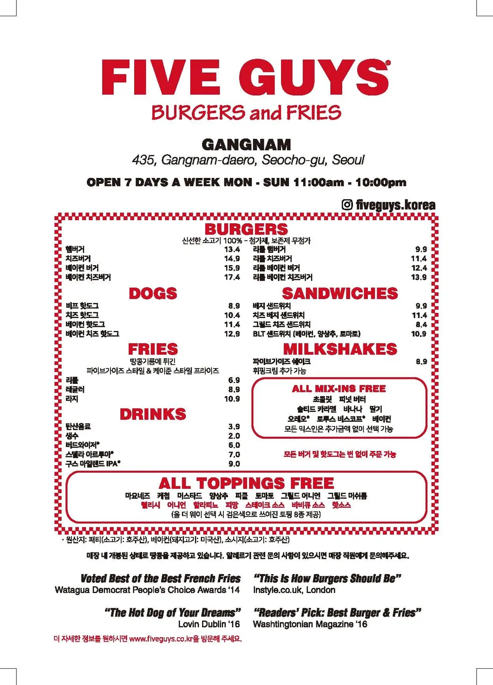 파이브가이즈 국내 3호점, 고속터미널점 오픈 정보