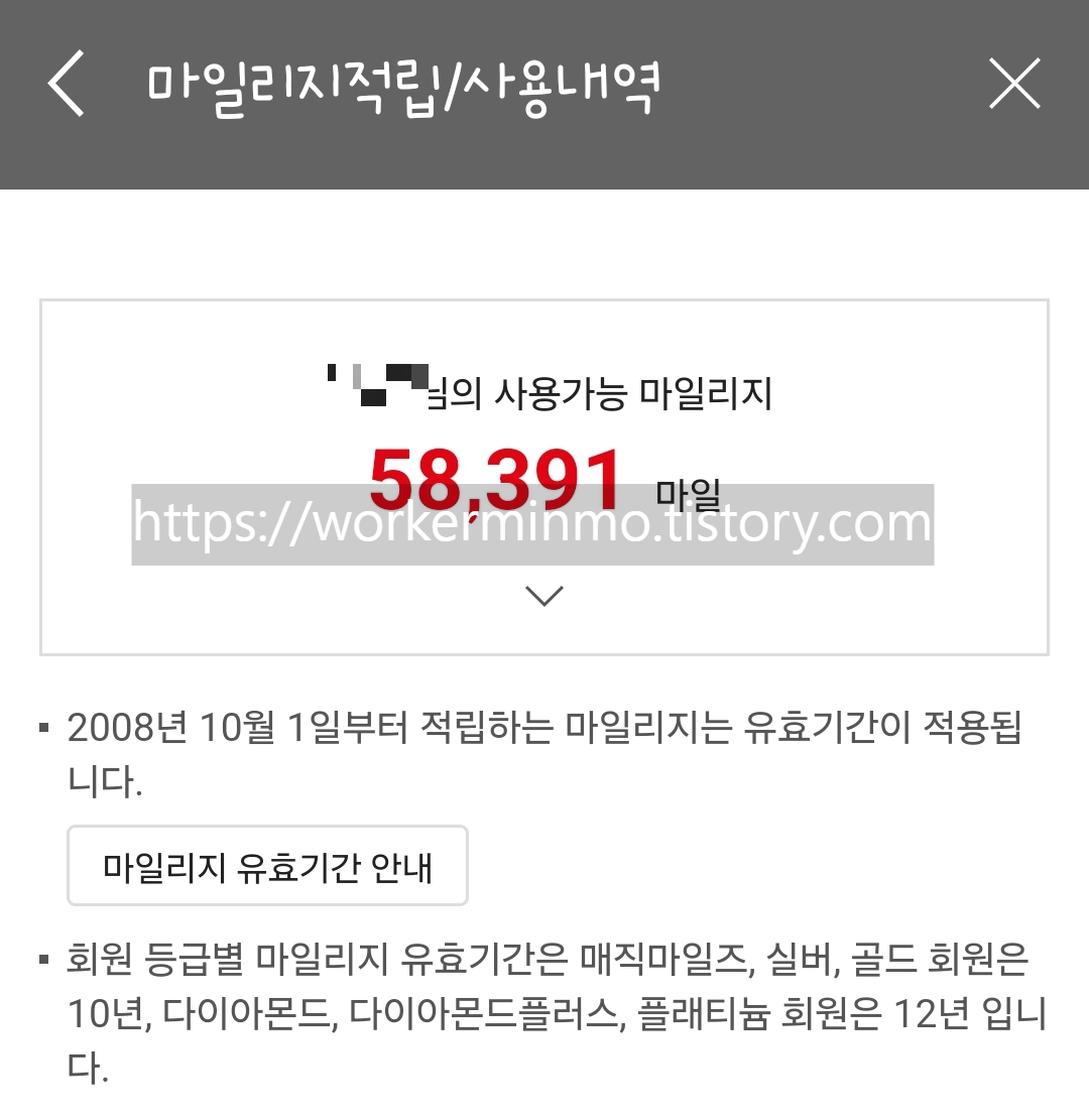 저는 이 카드를 사용한지 1년이 안 되었는데, 결혼 준비하면서 드는 큰 돈이 많아서인지 벌써 5만 8천 마일리지가 넘었네요.