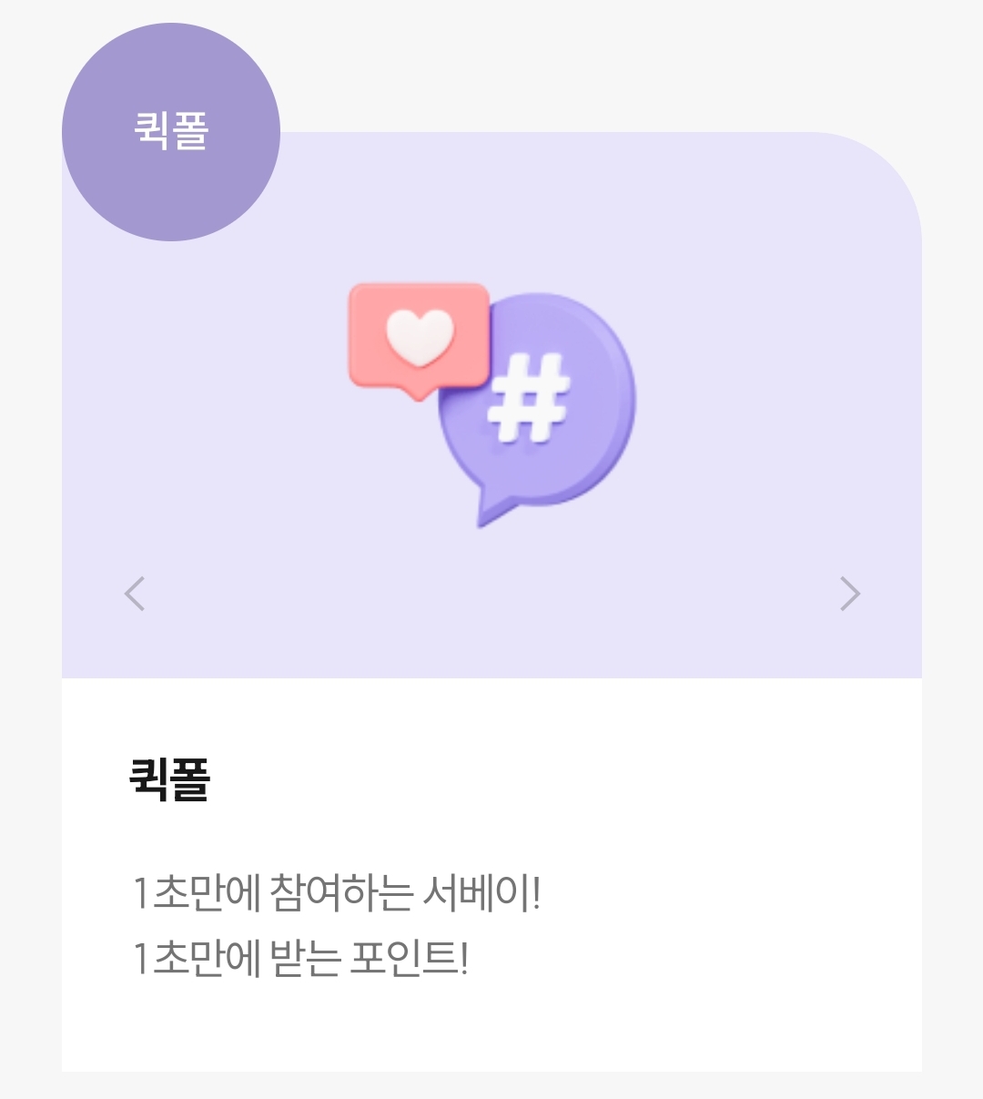 퀵폴 메뉴도 있는데, 자주 업데이트 되지는 않지만 1초라는 짧은 시간으로 포인트를 얻을 수 있습니다. 수시로 퀵폴 메뉴에 들어가서 진행되고 있는 투표가 있는지 확인하는 것이 좋습니다.