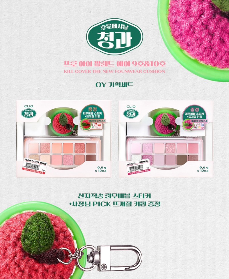 클리오의 후로페샤날 청과 에디션에는 킬 커버 더 뉴 파운웨어 쿠션이 새롭게 디자인된 케이스를 갖추고 있으며, 프로 아이 팔레트 에어 신컬러 9호와 10호가 추가되었습니다. 또한, 쉬폰 블러 틴트의 새로운 신컬러 19호부터 22호까지 출시될 예정입니다.