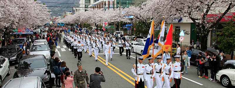 주요 일정으로는 중원로터리에서 전야제, 팔도풍물시장, 예술문화공연 등의 주요 행사가 있고 북원로터리에서는 이충무공 동상에 헌다헌화, 추모대제, 승전행차 퍼레이드가 열립니다. 또한 군항도시의 특성을 살린 <군악의장페스티벌>은 축제기간 중 금요일 저녁과 주말에 개최 되는데 군악과 의장이 융합된 군대예술 공연으로 군악대의 힘찬 마칭공연과 의장대의 멋있는 제복에 절도 있는 공연은 진해군항제 벚꽃축제에서만 볼 수 있는 공연입니다.